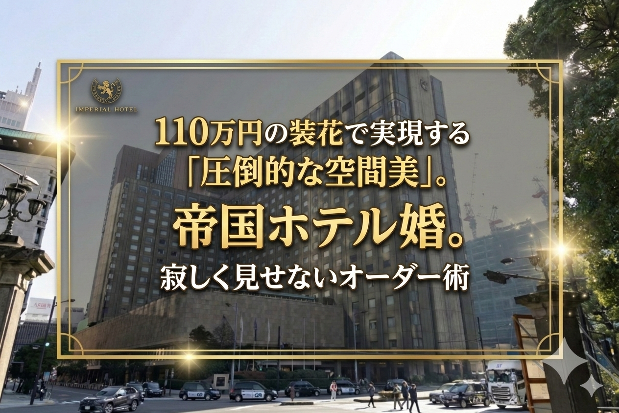 「帝国ホテルのバンケットは、とにかく広い。天井も高い。寂しく見えないか不安……」。そんなプレ花嫁・プレ花婿の共通の悩みを、私たちは「110万円の装花」と「戦略的なオーダー術」で、見事に「圧倒的な空間美」へと昇華させました!